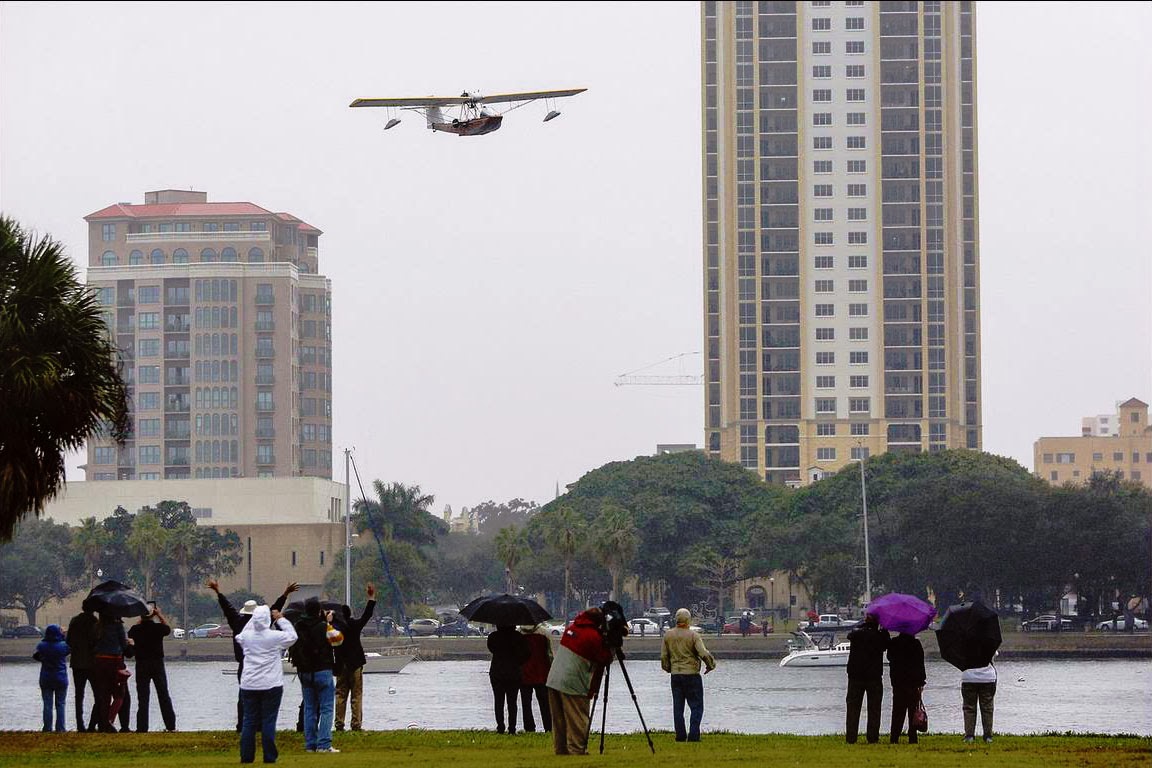 Neste histórico dia, o já muito experiente piloto Tony Jannus pilotou um hidroavião Benoist XIV entre St. Petersburg e Tampa com um único passageiro, o presidente da Camara de St. Petersburg que participou no leilão de angariação de fundos (para a compra de duas bóias de sinalização da baía que ainda existem). O bilhete acabou por ser licitado por US $400 em vez de ter custado $5 dólares que era a tarifa publicada.