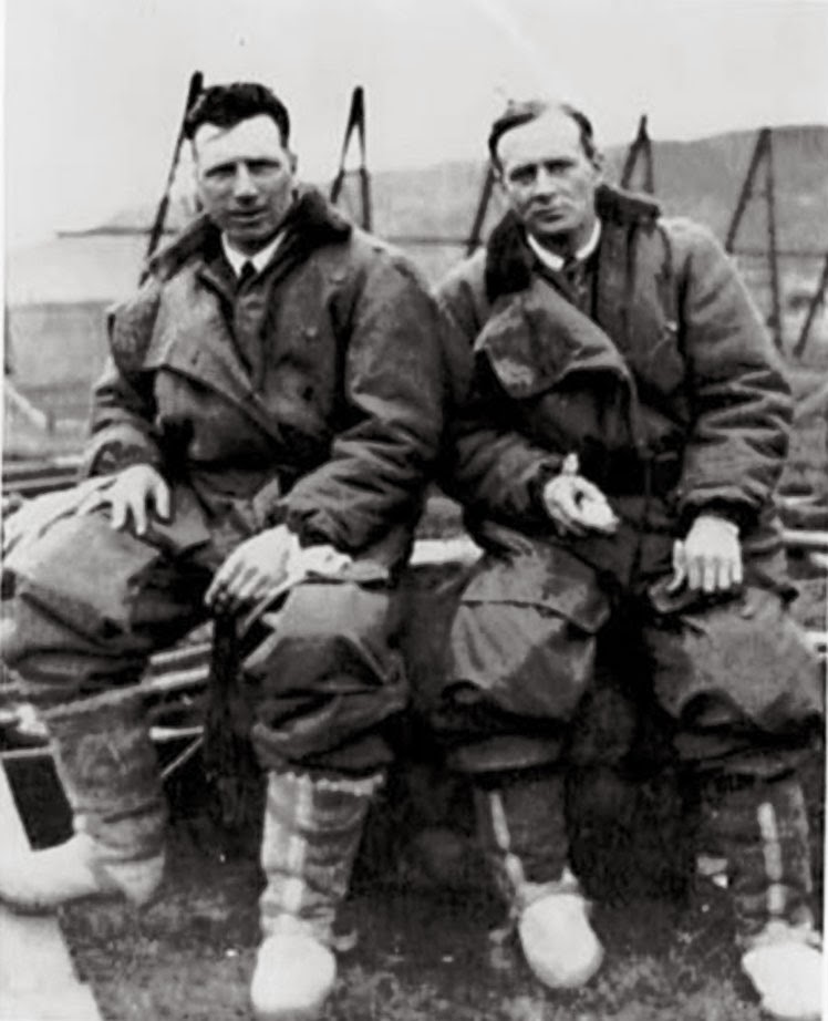 John Alcock e Arthur Whitten Brown nos seus fatos de voo, em 1919.