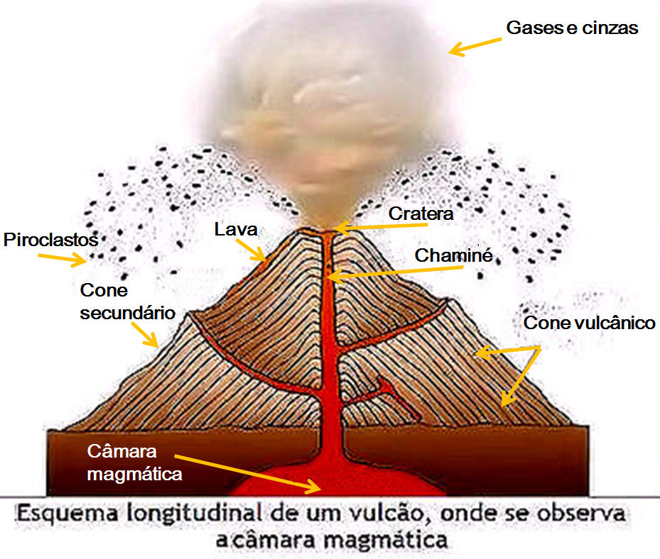 «Vulcão é uma abertura na crosta terrestre, de formato montanhoso, por onde saem magma, cinzas, gases e poeira».