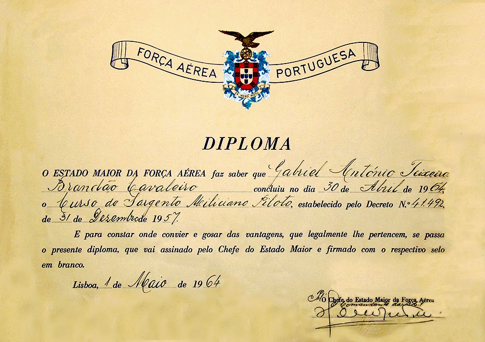 E só depois fui brevetado em Sintra como Piloto da Força Aérea Portuguesa, quando o resto do nosso curso ali terminou finalmente o T-6. Já eu tinha sido largado em T-33...